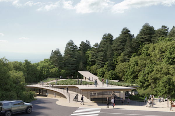右(1画面時は下)の画像が2026年オープン予定のバリアフリー施設の画像です。隈研吾さん設計のビジターセンターから露頭近くまでは車椅子でも行くことができるそうです。