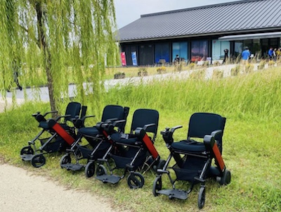 東海道新幹線のぞみに車椅子乗車!では、新型のぞみN700S系の2種類の車両にある3種類の車椅子対応座席をご紹介しています。1つ目は11号車の最後尾12列目と13列目だけは、12A・12Bと13A・13Bが左側にあり、各列ともC席がありません。2組の車椅子ユーザーが利用できます。右側には12D・12Eと13D・13Eがある普通席です。(以下では「2席+2席タイプ」と呼称)