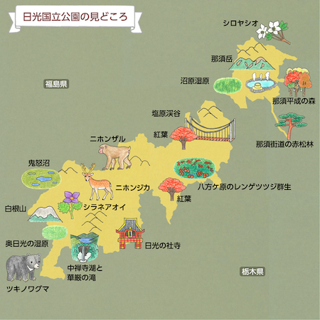 日光国立公園の見どころと見頃はつぎのとおりです。盛の頃行ってみましょう。