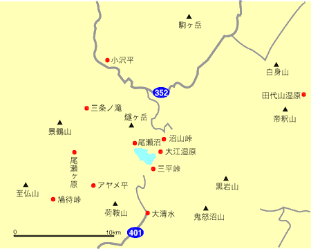 尾瀬国立公園の中核である尾瀬ヶ原は日本を代表する山地湿原であり、駒ヶ岳地域および田代・帝釈山地域は2000メートル級の山岳が連なっています。