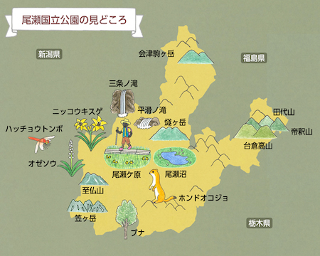 尾瀬国立公園の見どころと見頃はつぎのとおりです。盛の頃行ってみましょう。