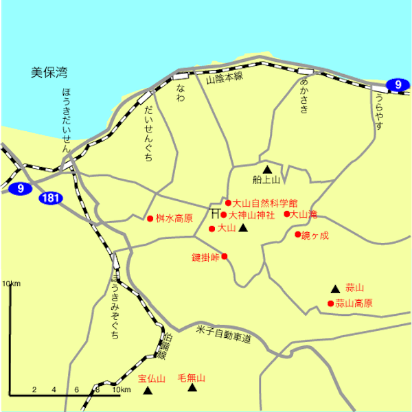 山岳および高原区域は中国山地の最高峰大山(1729m)から蒜山一帯からなり、山岳・高原景観がすばらしいです。大山は「伯耆富士」と呼ばれる一方で、北壁や南壁は厳しい山岳景観が見られます。