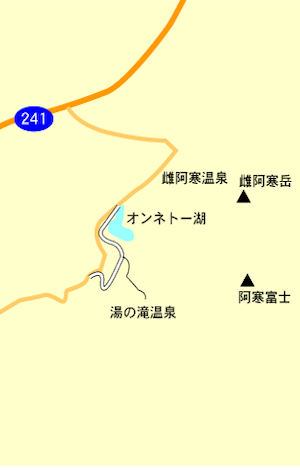 オンネトー湖と湯の滝は道道241号線から奥まった場所にありますが、透明度が高いオンネトー湖には遊歩道があります。1周1時間30分で歩くことができ、歩いて30分のところに高さ30mの断崖から温泉が流れ落ちる湯の滝があります。遊歩道の詳細はオンネトー遊歩道のコース案内をご覧ください。