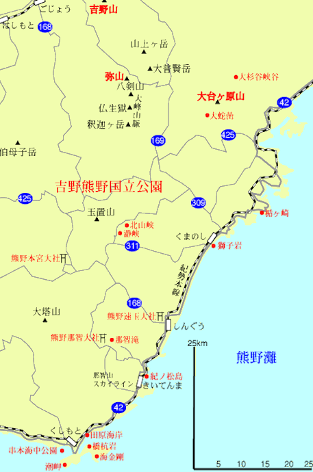 吉野熊野国立公園のバリアフリー化は進んでいるとは言えませんが、障害者や高齢者などのハンディにとって車を使えば、ある程度楽しめる国立公園です。そのわけは大峰山脈と大台ヶ原山を除いて、近くまで道路網が整備されているからです。