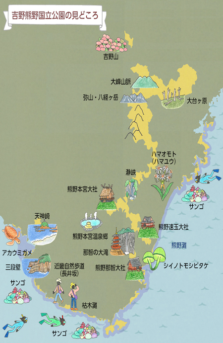 吉野熊野国立公園の見どころと見頃はつぎのとおりです。盛の頃行ってみましょう。