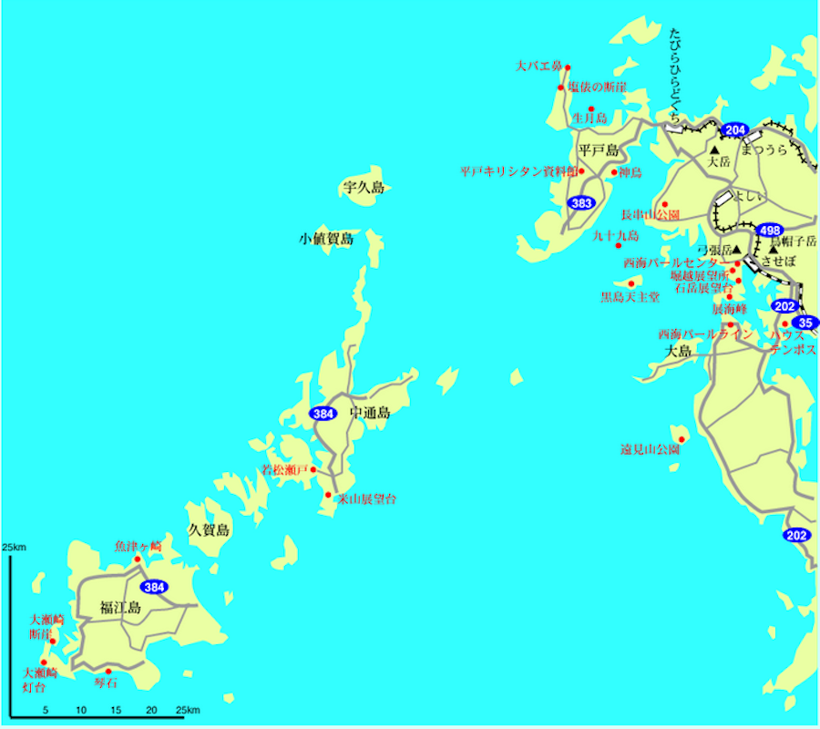 西海国立公園では外洋性多島海景観を展望台や遊覧船から見て楽しめます。