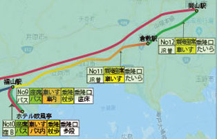 「車いすで鞆の浦⇒岡山⇒宮島⇒広島泊を楽しむでは、 車いすで「瀬戸内海沿岸」を楽しもうと計画される障害者やシニアなどのハンディをお持ちのお客さまの役にたつ、バリアフリーオンリーではなく、非日常を楽しめる鞆の浦⇒岡山⇒宮島⇒広島泊のバリアフリー体験情報を、マップ上でご提供しています。