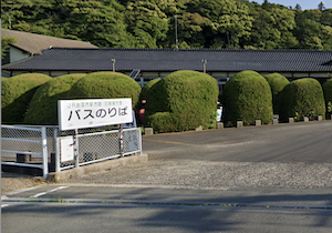 出雲大社神楽殿を出て真っ直ぐに進むと、飲食店街を通って、さざれ石がある大社(西側)駐車場へ、スロープを使って車椅子でも出られます。ここから国道431号の十字路交差点を稲佐の浜方面に向かい、蕎麦処八雲の先を右折すると、一畑バス大社線の出雲大社バスターミナルがあります。JR出雲市駅行きバスに乗ると、その先のきつい坂道を回避できます