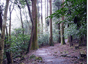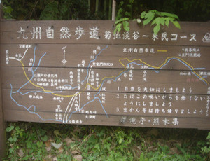 阿蘇町内牧から菊竜市、菊池渓谷を延長16.0kmで詰ぶ九州自然歩道に入ると、瀬はかなり下の方になり、今度はじっくり新緑だけを観賞することができます。 九州自然歩道はアスファルトとウッドチッピで整備され、車いすの方も気軽に散策できるようになっています。
