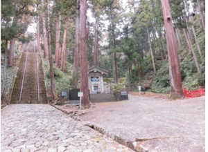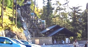 斜行エレベーター山頂駅から境内への移動ルートはフラットな舗装路面です。山頂駅を出ると境内に入り本堂の横にでます。右手に五重塔を見上げる地点です。境内は砂利路面ですが、大客殿・菩提梯・新エレベーター前まで舗装されたバリアフリーカート道が整備されています。