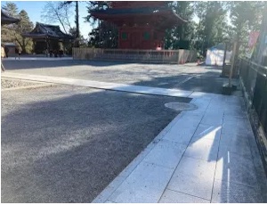 一般的な神社仏閣の境内は車椅子が動きにくい砂利舗装で、香炉などにアクセスできず、建物外部の彫刻などを楽しむことが難しいです。また各建物の入り口に階段があり、車椅子ユーザーはアクセスできず、建物内の宝物や彫刻を楽しむことができません。