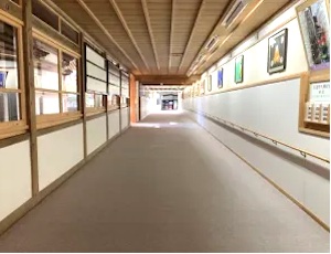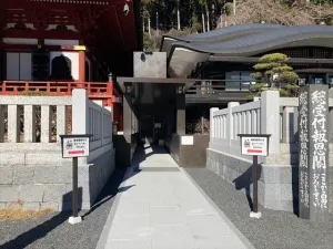 本堂の正面左側にある宝物館の入口は階段ルートで、そこから靴を脱いで段差を上がり観覧します。宝物館は車椅子では観覧できません。