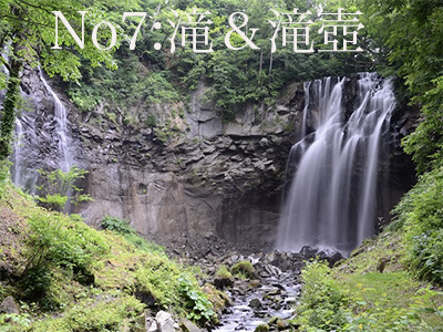 アシリベツの滝は「日本の滝百選」に選ばれ、高さ26m、水量も豊富で、迫力ある姿が楽しめます。滝は右側の厚別川本流を落ちる雄滝と左側の清水沢川の落ちる雌滝に分かれています。アシリベツの滝に車でお越しの方は、国営滝野すずらん丘陵公園の渓流口駐車場に車をとめ、遊歩道を歩いて行くことができます。バスでお越しの方は、地下鉄真駒内駅から国営滝野すずらん丘陵公園東口行きバスに乗車し、渓流口バス停で下車し、遊歩道を歩いて行くことができます。バスの乗車時間は約30分、運行本数は地下鉄真駒内駅8:45から15:45の間に10便あります。