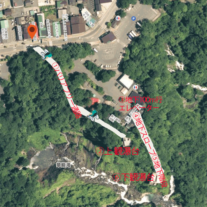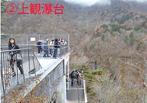 華厳の滝は、那智の滝と袋田の滝とともに「日本三大名瀑」の一つとされる奥日光の名瀑です。高さ97メートルの断崖を中禅寺湖の湖水が豪快に流れ落ち、滝壺にイワツバメが舞います。上観瀑台(2階建て)と下観瀑台(3階建て)がありますが、車椅子では通行不能なのは、上観瀑台(2階建て)の1階のみです。