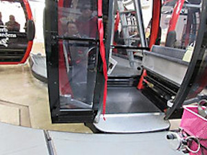 ロープウェイは車いすのままで乗車できます。1台のゴンドラに車いすの方1名と付き添いの方3名まで乗車できます。乗車の際はスタッフの介助を受けることができます。