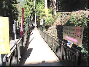 山麓・久遠寺駅へは西谷せいしん駐車場から斜行エレベーターに乗り、本堂横の山頂駅で降車し、バリアフリーカート道を通り、本堂裏側の遊歩道「南天の路」を通り約3分でロープウェイ山麓・久遠寺駅に車椅子でも到着します。