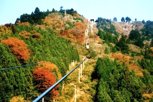 車いすで乗れる身延山ロープウェイは日蓮宗総本山・身延山久遠寺のある山麓・久遠寺駅と身延山(標高1,153m)山頂・奥之院駅を約7分で結ぶ三線交走式のロープウェイで、その高低差は763mと関東一を誇ります。