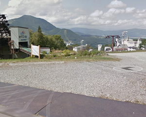 山麓駅前に駐車場があります。駐車場とロープウエイ乗り場の建物を繋ぐかなりきつい勾配のスロープが車椅子ユーザーの第一の難所です。走行距離は概ね13mですが、傾斜度は約25%位でしょう。女性や男性でも高齢の介助者では難しいでしょう。管理人のような「Parttimke Wheelchair User」であれば、車椅子を降りて、手すりと杖を頼りに自走し、介助者が空の車椅子を押し上げる方法がベストでしょう。