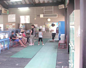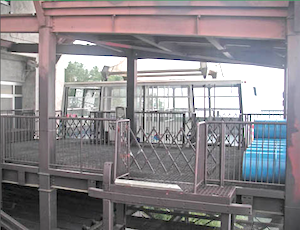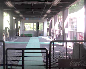 建物内に入れば、ゴンドラの乗り口まではほぼ平坦です。しかし、床はグレーチングとその一部にシートが乗せてある構造で下が透けて見えますので、高所恐怖症の方は少しドッキリするかも知れません。また、このスペースには売店やカフェは無く、券売機があるだけです。