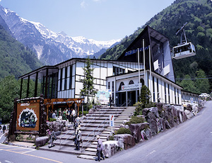 西穂高口駅は、5階建ての建物でレストラン・売店・トイレ・展望台などがあり、エレベーターが設置されています。1~2階は駅、3階は売店、4階は食堂、5階は屋上展望台となっております。車椅子の方はエレベーターを利用してください。駅舎の外は千石園地となっており、20分程度の散策(新穂高ロープウェイ降り口~屋上展望台~登山届出所)ができる遊歩道があます。こちらの遊歩道へは2階の出入り口を利用ください。