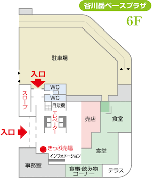 正面入口(6F)から入って右側にきっぷ売場窓口があますので、そちらで乗車券をお買い求めの上、ロープウェイ(7F)乗り場まで行きます。