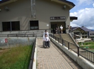 高水準のバリアフリー機能プラットホームと搬器との間には、段差や隙間が生じない構造となっており、車椅子の方や段差が気になる高齢者でも、安心して利用できます。谷川岳ベースプラザには無料貸出し用車椅子がありますので、6階インフォメーションにて受け付けに相談します。