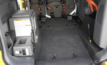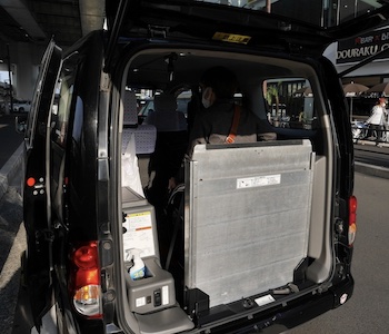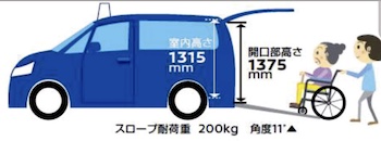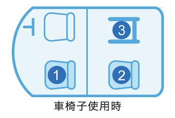 車椅子乗車時定員は4名(運転手含む、右側&中央後席を車椅子が占める)。